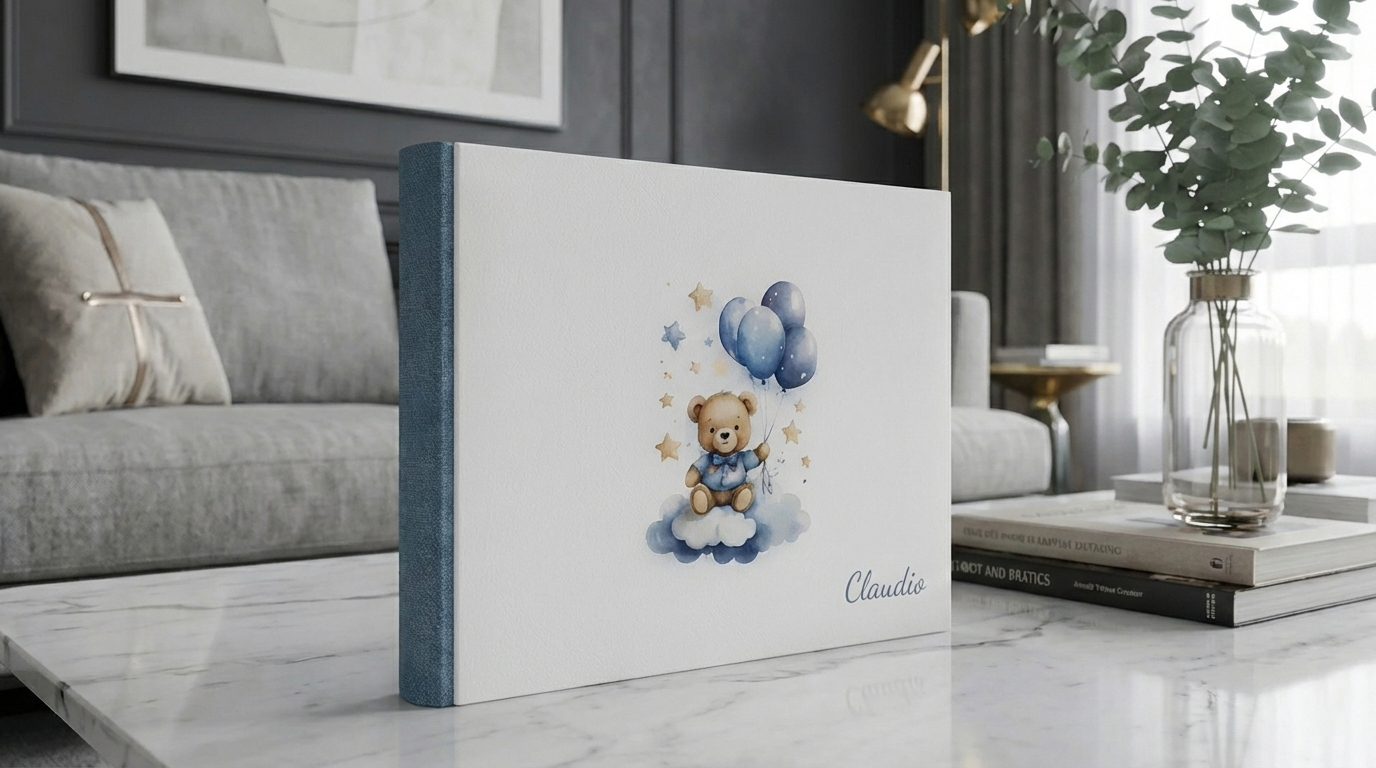 Questo album fotografico rappresenta l’essenza della tenerezza unita a un design moderno e sofisticato. È stato pensato per custodire i ricordi più dolci, come quelli di una nascita , mantenendo uno stile pulito ed elegante.